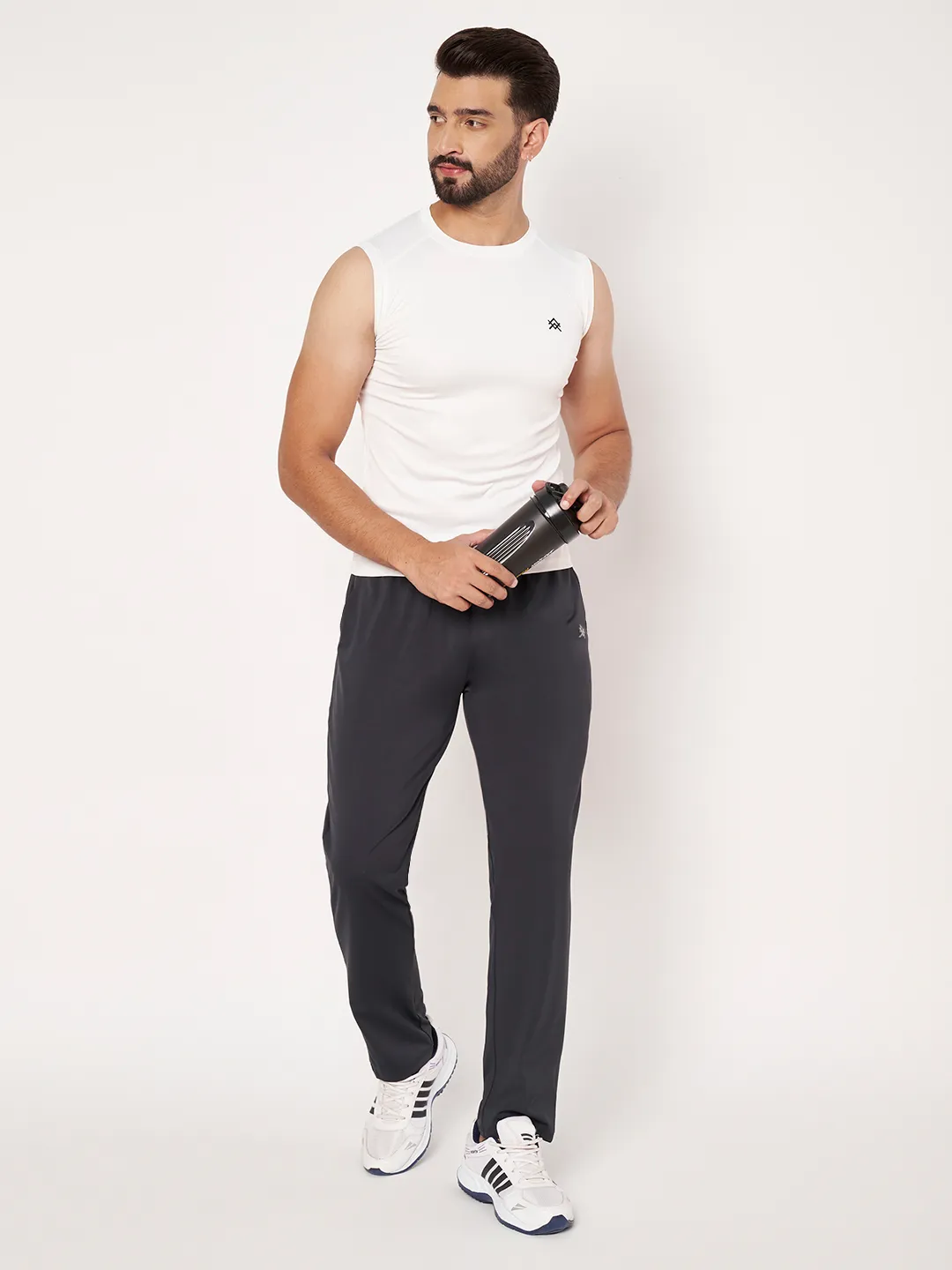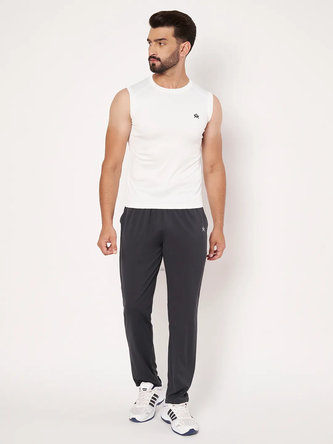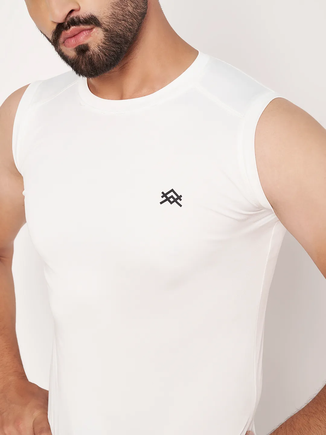 AVA TROIS Men’s Solid White Sleeveless Performance T-Shirt
