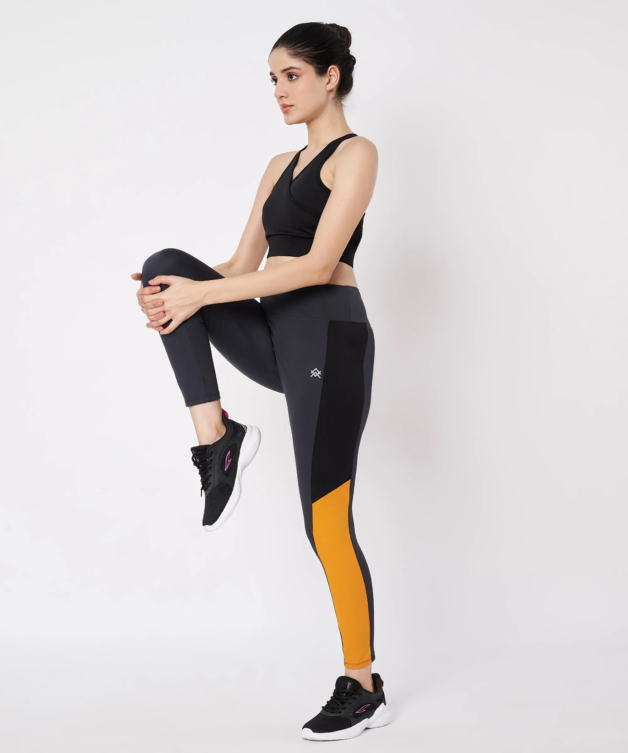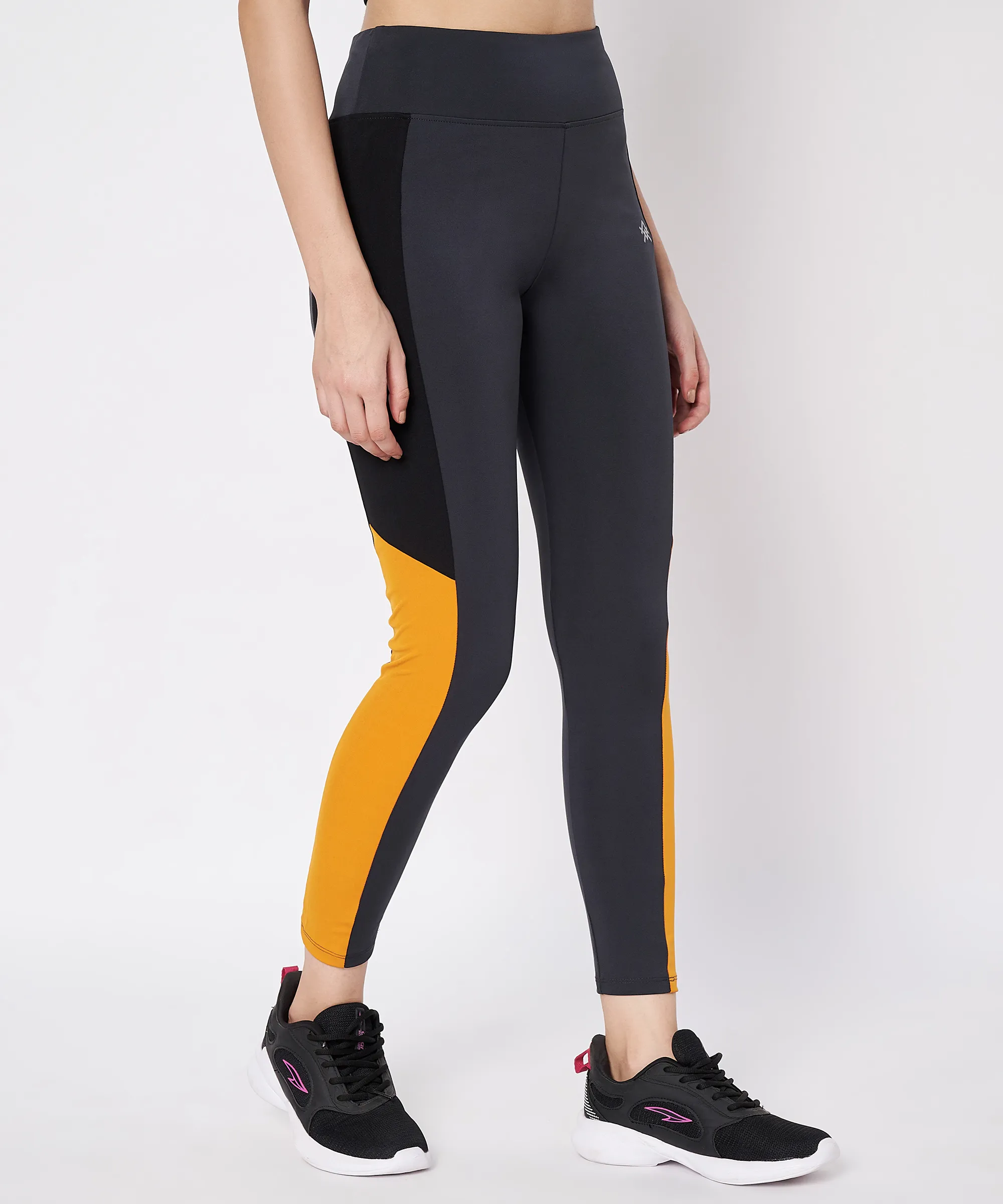 Avatrois Women’s High-Waist Colorblock Leggings – Black & Mustard Activewear Tights for Workout & Athleisure